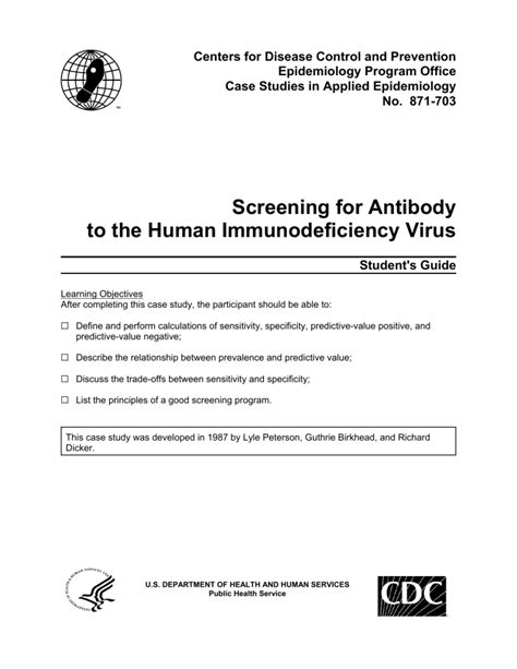 Free PDF Cdc Antibody Hiv Case Study Instructor Guide Paperback Open Library